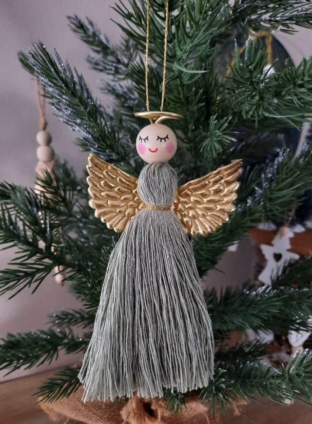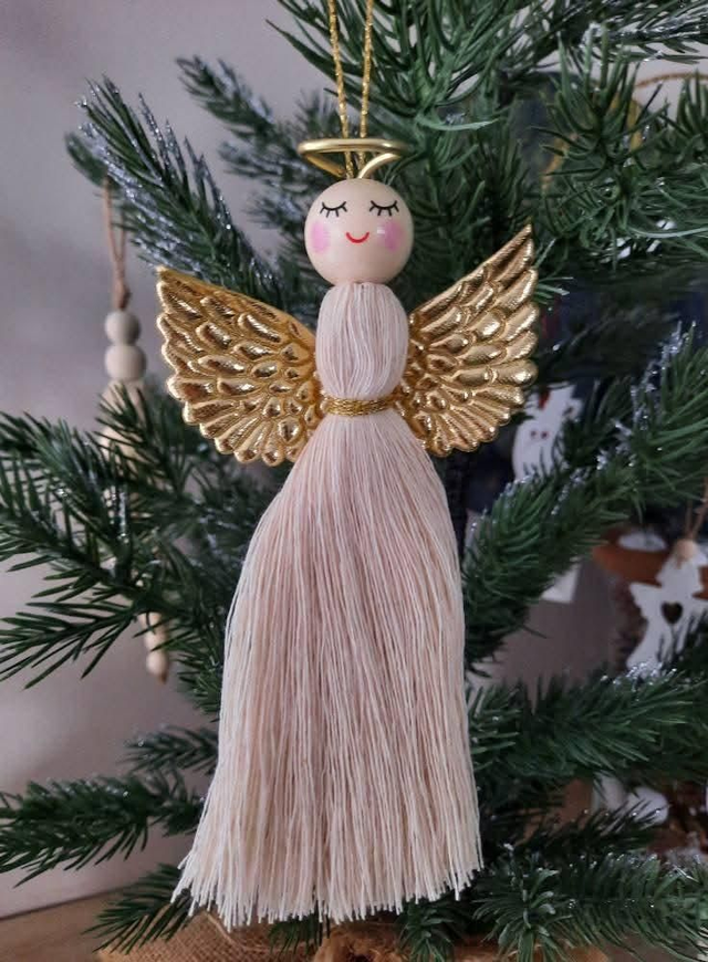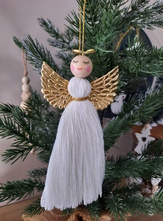 Apportez l'amour et la paix dans votre sapin de Noël avec ces jolis anges réalisés en macramé et perle de bois.